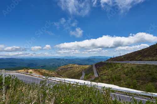 landscape, mountain, nature, plateau, national park, cloud, sky, june, gas, plant, tourist attraction, open air, tour tourism, summer, green, showplace, travel, meadow, view, journey, forest, green, way, route, sunny, blue skies, japan, mountain, forest