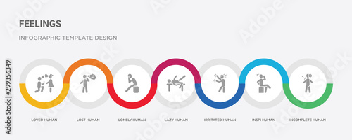 7 filled icon set with colorful infographic template included incomplete human, inspi human, irritated human, lazy lonely lost loved icons