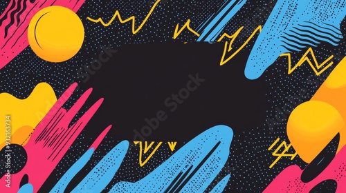80s, 90s, style, abstract, art, bright, geometric, pattern, central, empty, space, retro, nostalgic, vibrant, colourful, shape, vintage, design, background, copy space, creative, bold, rectangle, black, modern, graphic, artistic, template, advertising, promotional, layout, branding, digital, marketing, event, visual, communication, old school, neon, pop, culture, trendy, funky, dynamic, aesthetic, playful