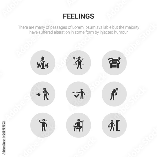 9 round vector icons such as refreshed human, relaxed human, relieved human, rough sad contains safe satisfied sca sexy refreshed relaxed icon3_, gray feelings icons