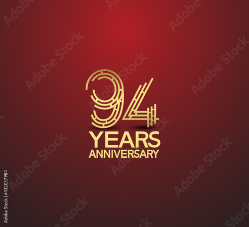 94 years golden anniversary logotype with labyrinth style number isolated on red background. vector can be use for template, company special event and celebration moment
