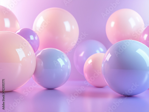 a 3D background featuring large, glossy pastel spheres