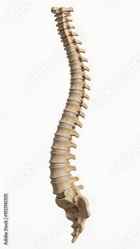 A 3D illustration of the human spine, showcasing vertebrae and intervertebral discs with perfect anatomical detail.