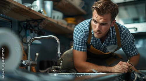 plumber, fixing, render, leaking, pipe, kitchen, sink