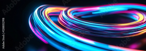 three-dimensional, neon, line, background, panoramic, wallpaper, abstract, spiral, curvy, ribbon, glow, light, spectrum, wavy, stripes, thread, trajectory, track, black, floor, energy, dynamic, ultraviolet, violet, transition, virtual, laser, minimalist, fantastic, cyber, digital, futuristic, loop, fantasy, wide, jet, transfer, isolated, beam, yellow, power, technology, datum, pink