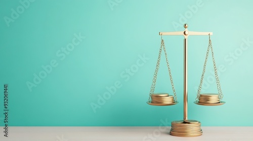 A balanced gold scale on a vibrant teal background, symbolizing justice and equality in a modern legal concept.