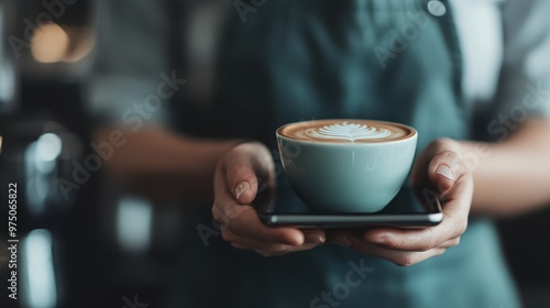 barista, latte, hot drink, art, tray, intricate, design, cup, holding, professional, cafes, culture, drink, hot beverage, hand, hospitality, service, espresso, cappuccino, frothy, steaming, cosy, warm, beverage, enjoyment, artful, morning, specialty, brewing, cafes, relaxing, artistry, presentation, detailed, inviting, caffeinated, lifestyle, care, skilful, work, comfort