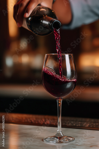 barkeeper, red wine, wine glass, wine bottle, eatery, bar, entertaining, shiraz, cabernet, wine, glasses, beverage, celebration, alcohol