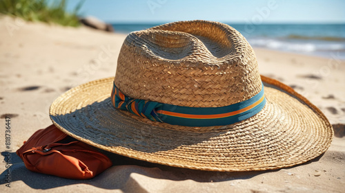 beach, hat, sand, sun, ray, sunglasses, summer, vacation, sunlight, fashion, accessory, relaxation, leisure, holiday, warmth, leghorn, travel, scenery, sunny, coastal, shade, beachwear, stylish, idylli, tropical, serene