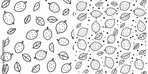 A beautiful black and white seamless doodle pattern featuring cute doodle lemons is showcased in this hand drawn trendy background, ideal for design backgrounds on greeting cards, invitations,