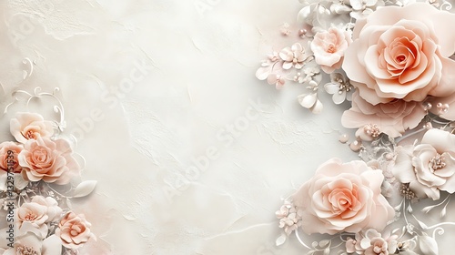 flower, rose, floral, bloom, blossom, bouquet, arrangement, design, art, decorative, delicate, elegant, romantic, soft, pastel, peach, white, ivory, cream, texture, background, illustration, nature, beauty, spring, summer, wedding, invitation, card, wallpaper, ornament, style, vintage, artistic, crafted, composition, detail, light, shadow, flower petals, branch, leaf, bud, pattern, flourish