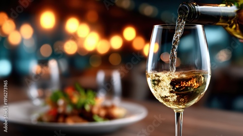 A beautiful glass of white wine being poured in a cozy atmosphere, highlighting the enjoyment of fine drinking and social gatherings.