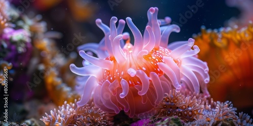 A beautiful sea anemone with pink and white tentacles
