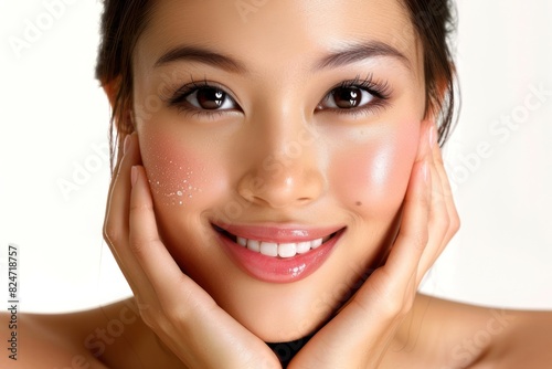 face, woman, white, beautiful, beauty, skin, background, portrait, facial, smile, female, young, healthy, happy, care, girl, spa, make-up, hair, health, natural, fresh, pretty, skincare, model, hand, body, hand, soft, treatment, isolated, honed, age, brunette, clear, lady, cosmetology, elegance, cosmetic, caucasian, attractive, touching, clean, touch, cosmetic, looking, cream, skincare, wellness