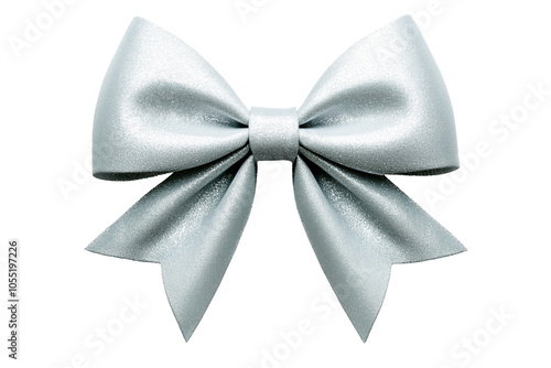 A beautifully crafted silver satin bow with tails, isolated on transparent white background, perfect for gift wrapping.