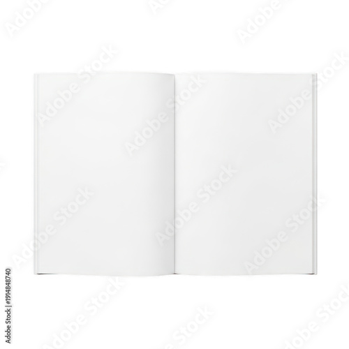 A blank white book standing upright with its pages open and facing forward isolated on transparent background