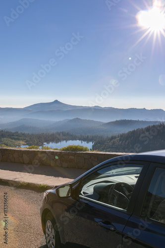 car, road, overlook, travel, view, driving, highway, landscape, sky, drive, auto, vehicle, mountain, speed, automobile, mirror, transportation, nature, trip, blue, wheel, rural, journey, mountain, road trip, green, scenic, lake, viewpoint, sun, summer