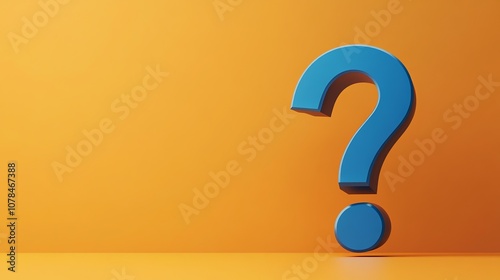 A blue question mark on an orange background.