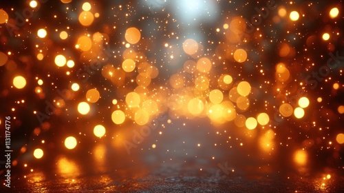 A blurred background of sparkling golden bokeh lights creating a festive atmosphere.