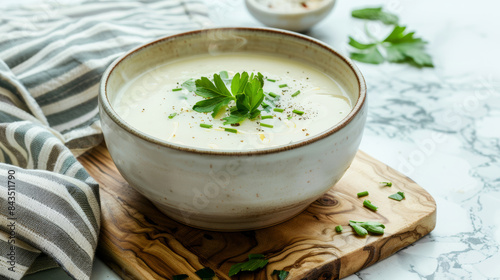 soup, creamy, garnish, rustic, meal, comfort, food, heartwarming, bowl, delicious, wooden board, culinary, parsley, appetising, homemade, mealtime, savoury, cookery, inviting, culinary arts, dinner, cosy, fresh, herb, traditional, epicure, wholesome, presentation, cream, favor, dish, delightful, kitchen, hearty, receipe, prepared, deliciously, herbal, dining