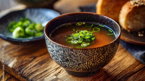 bowl, soup, green, onion, top, sit, wooden, food, lunch, vegetable, table, healthy, dinner, bread, hot, meal, vegetarian, dish, cream, delicious, cookery, rustic, traditional, background, plate, red, spoon, eating, homemade, cooked, fresh, diet, white, parsley, epicure, carrot, pepper, tasty, tomatoes, view, creamy, wood, basil, vegan, garlic, yellow, meat, ai