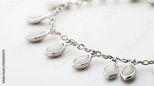 A bracelet featuring small teardrop charms alternating between platinum and white enamel