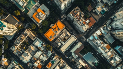 A breathtaking aerial view of an urban cityscape showcasing roads and various buildings