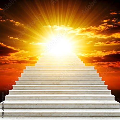A breathtaking marble staircase, bathed in warm golden light, rising into the clouds under a glowing sunset, AI Generated