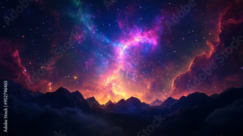 nebula, mountain, star, space, cosmos, universe, night sky, galaxy, astronomy, science, fantasy, artwork, digital artwork, illustration, colourful, vibrant, bright, dark, mysterious, wonder, majestic, scenic, landscape, nature, beauty, celestial, cosmic, interstellar, extraterrestrial, distant, unknown, surreal, dreamy, abstract, background, wallpaper, science fiction, exploration, discovery, future, imagination, dream, hope, inspiration