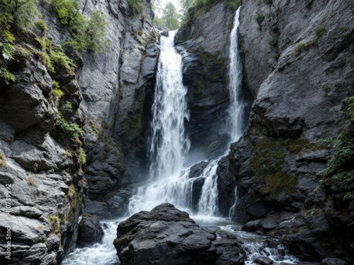 waterfall, mountain, nature, landscape, rock, water, cliff, green, vegetation, scenic, beauty, serene, tranquil, cascade, flowing, powerful, energy, wild, untamed, natural, wonder, photo, image, picture, visual, view, vista, panorama, background, wallpaper, environment, ecosystem, geology, hydrology, geography, travel, adventure, explore, discover, destination, journey, outdoors, fresh, clean, dynamic, still, calm