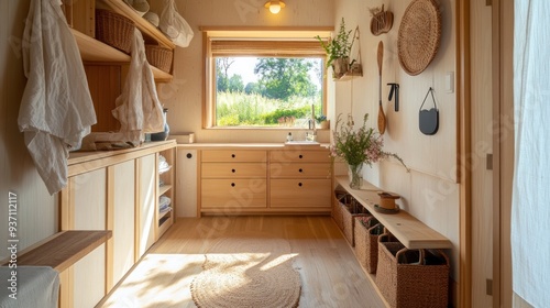 wood, floor, window, natural, light, wicker, basket, shelf, wall, room, airy, bright, interior, design, home, decor, house, modern, style, rustic, cosy, comfortable, farmhouse, bungalow, minimalist, simple, clean, natural light, sunlight, beam, sun, shade, blind, curtain, houseplant, flower, storage, organisation, open, roomy, kitchen, bathroom, entranceway