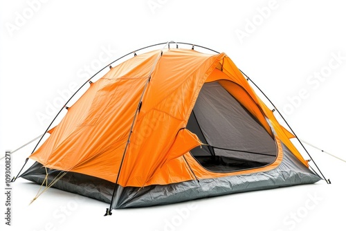 A bright orange camping tent with gray accents