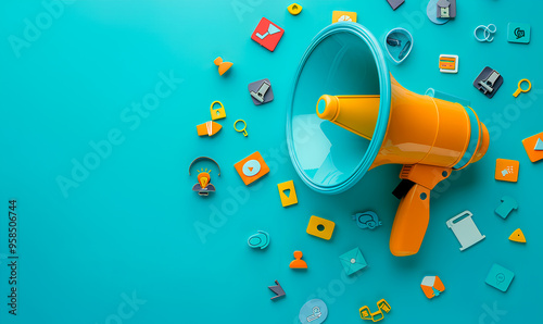 megaphone, communication, icon, tool, creativity, workspace, vivid colors, advertising, announcement, speech, marketing, sound, loudspeaker, media, concept, design, announcement, illustration, symbol, message, technology, promotion, engagement, networking, information, attention, graphic, element, colours, digital, visual, influence, decor, event, alert, brand, symbol, connection, teamwork, idea, sharing, audience