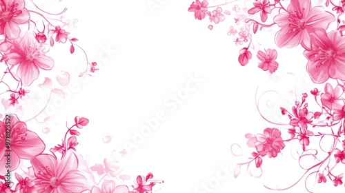 A bright pink floral border design with detailed blossoms and flowing vines, creating a cheerful and feminine decorative frame.