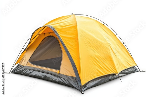 camping, tent, shelter, yellow, outdoors, travel, adventure, recreation, dome, waterproof, fabric, nylon, polyester, equipment, lightweight, portable, structure, summer, holiday, vacation, weekend, escape, nature, exploration, hiking, backpacking, trail, setup, assembled, design, ground, floor, footprint, frame, pole, ventilation, entrance, screen, isolated, studio, clean, object, domestic, living, lifestyle, protection
