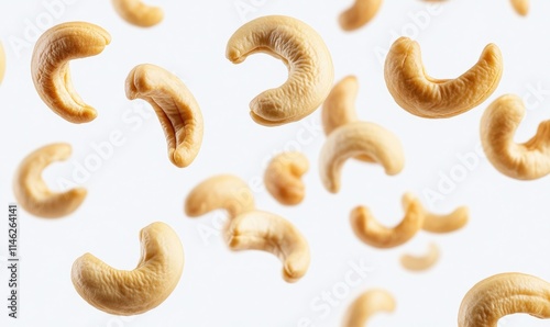 A bunch of cashews are flying through the air
