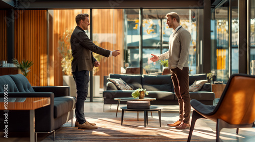 a businessman shaking hands with a client or colleague in a contemporary office space, business networking in modern office
