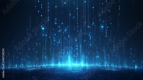 A captivating blue light pattern resembling digital rain, creating a mesmerizing atmosphere of depth and tranquility.