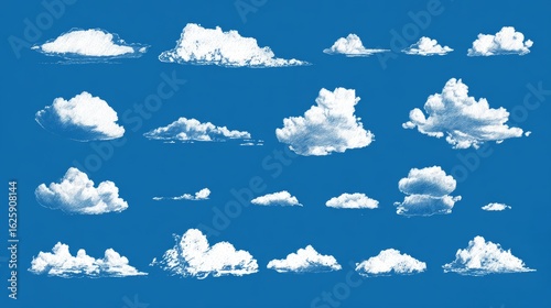 A captivating collection of cloud formations dances against a vibrant sky. Presenting a palette of shapes, sizes, and textures.