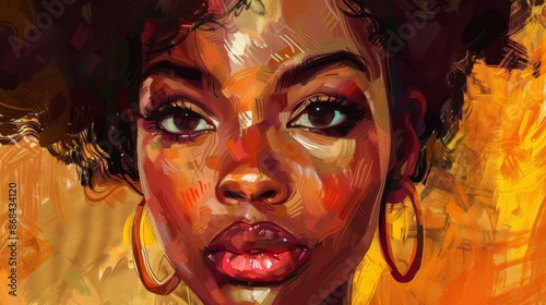 portrait, woman, illustration, expressive, eye, bold, vibrant, artistic, soulful, young, art, colourful, emotion, beauty, creativity, style, modern, youth, afro, glow, texture, artwork, african, face, hair, painting, design, glowing, intense, bright, depth, visual, engaging, head shot, structured, pattern, masterpiece, signature, energy