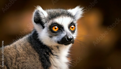 A captivating portrait of a Lemur Catta, showcasing its bright, inquisitive eyes and iconic black-and-white ringed tail