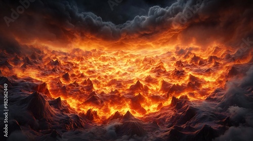 A captivating view of molten lava surrounded by dark clouds, showcasing the raw power and beauty of nature's fiery landscape.