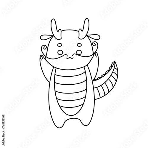 A cartoon dragon with a mustache and glasses is standing on a white background