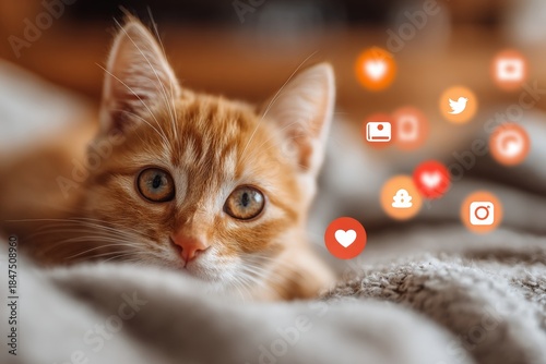 A cat's morning delight: smartphone in paws. Morning cat fun. When benefits of social media come with mental side effects. Cat morning joy. Feline delight.