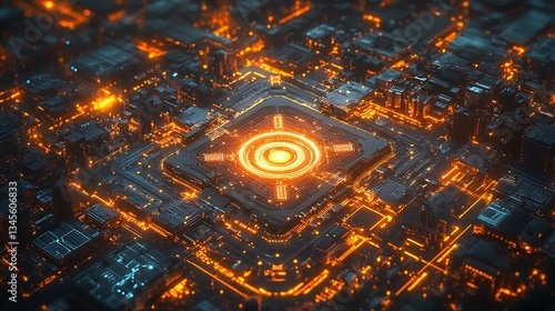 A central glowing processor emitting radiant light, surrounded by intricate circuitry with vibrant energy flows, dynamic neon hues of teal and magenta, holographic particles enhancing the atmosphere,
