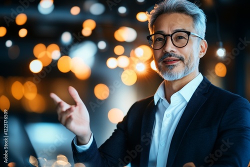 ceo, conducting, meeting, sleek, corporate, boardroom, standing, head, table, confident, demeanor