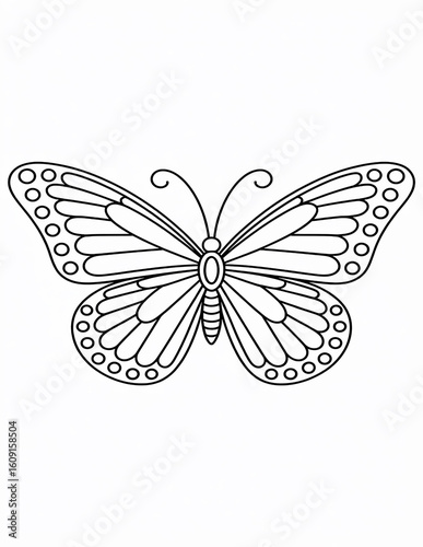A charming butterfly with dotted wings is isolated on white background, ready to be filled with vibrant colors in your coloring book