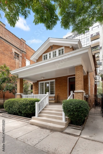 A charming craftsman-style home in a quiet, tree-lined street - ambiance architecture porch charming serene