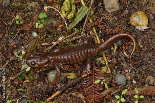 A chcolate brown adult of the Northwestern salamander, Ambystoma gracile