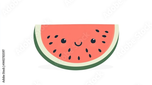 A cheerful slice of watermelon with a cute face perfect for summer designs and food illustrati